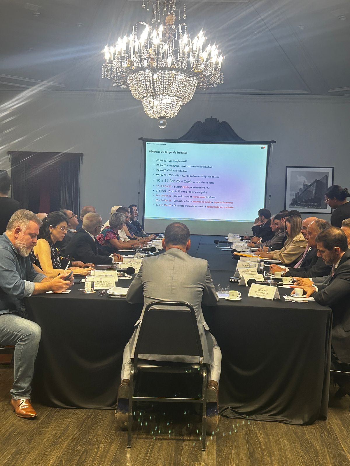 A AIPESP representada pelo seu Presidente Fernando Marietto Magalhães, compareceu na tarde de ontem 12/02/2025 no Palácio dos Bandeirantes junto com outras Entidades de Classe que fazem parte do Fórum Resiste, tendo por finalidade discutirem sobre a Lei Orgânica da Policia Civil do Estado de São Paulo. A reunião foi conduzida pelo Sr. Dr. Fraide Salles Secretário da Casa Civil e coordenador deste grupo.